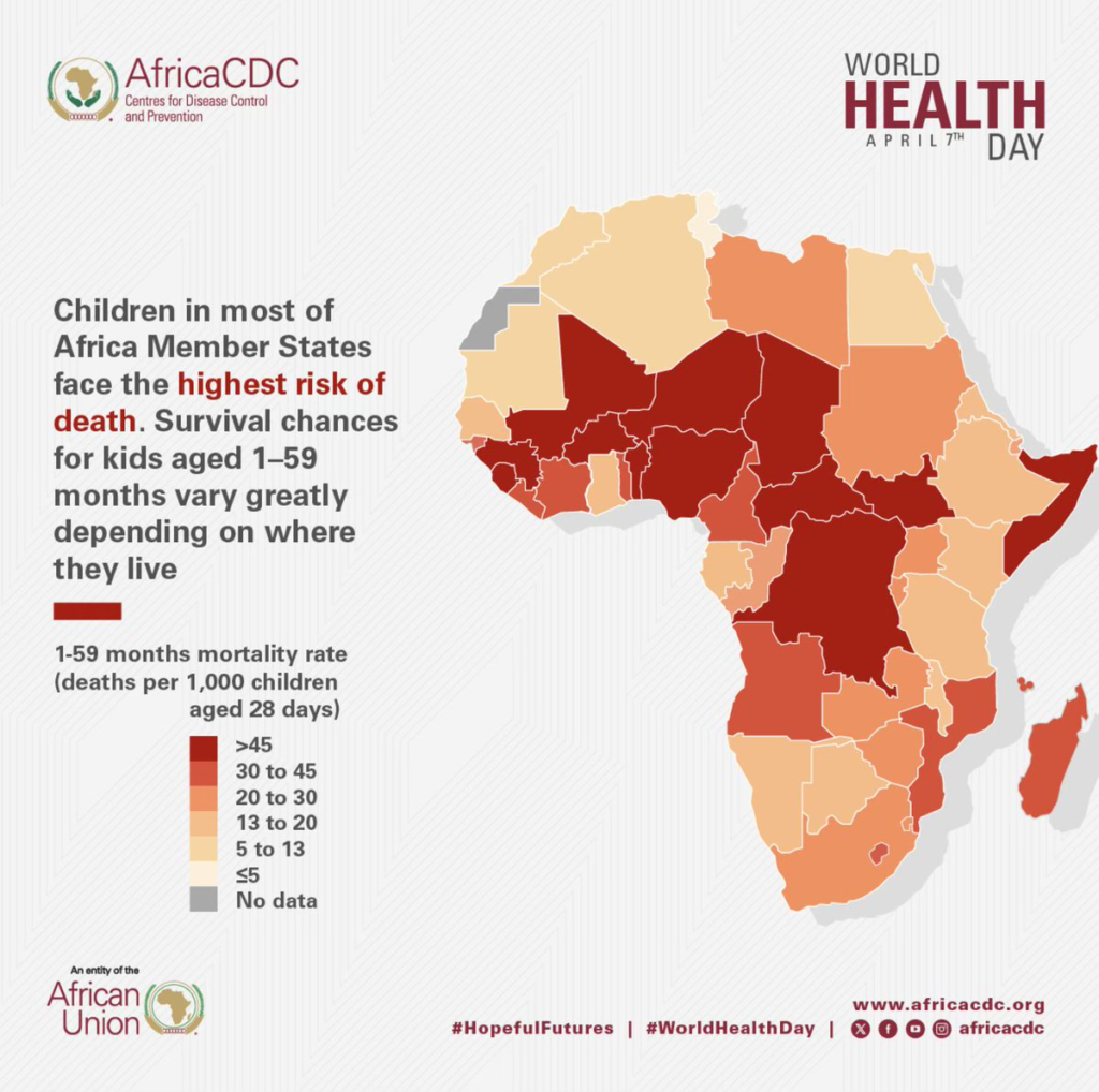 “In most African Union member states, children are 18 times more likely to die before their 5th birthday than in other regions,” Africa CDC