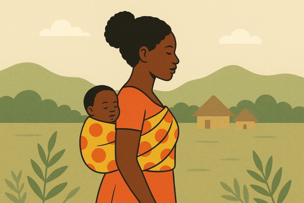 Across rural Africa, mothers can often be seen with brightly coloured clothes tied tightly around their backs, holding their babies close as they farm, cook, and walk to the market.