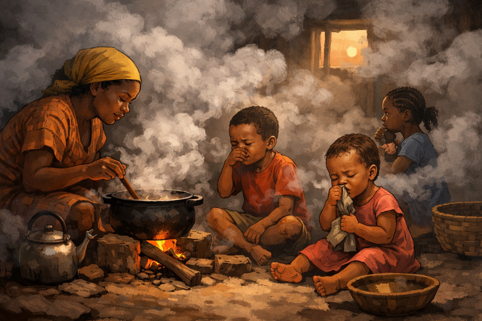 In many homes, families cook over open fires or simple stoves without proper ventilation. The smoke fills the house, and young children often breathe it in every day.