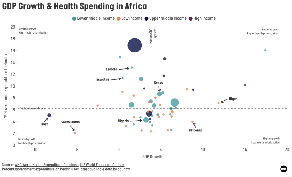 In Africa, economic growth has not translated into increased government spending on the health sector. The reckoning has come, especially now that Donald Trump dismantled USAID, which had been a major source of budgetary support for public health across the continent. Chart from a piece by One Data titled A Hinge Moment for Africa’s Health Security.